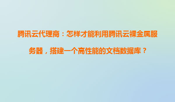 4008-020-360 騰訊云代理商指南:利用騰訊云裸金屬服務(wù)器搭建高性能文檔數(shù)據(jù)庫 一、裸金屬服務(wù)器與文檔數(shù)據(jù)庫的優(yōu)勢(shì) 騰訊云裸金屬服務(wù)器(BMaaS)提供物理機(jī)級(jí)別的性能隔離,適合對(duì)I/O...