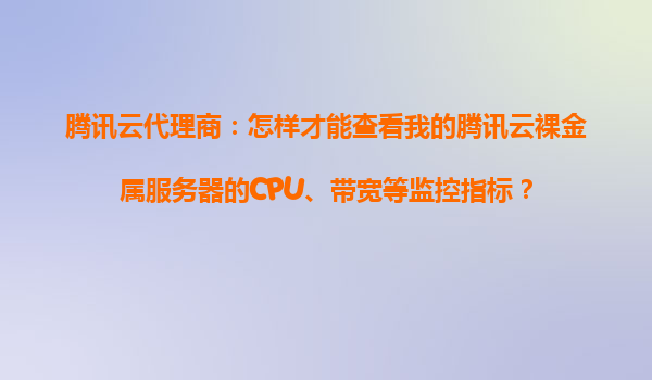 2025-10-24騰訊云代理商:如何查看騰訊云裸金屬服務器的CPU、帶寬等監(jiān)控指標? 一、騰訊云裸金屬服務器的核心優(yōu)勢 騰訊云裸金屬服務器(BareMetalServer)結合了物理機的性能與云計算的彈性,適用于高性能計算...