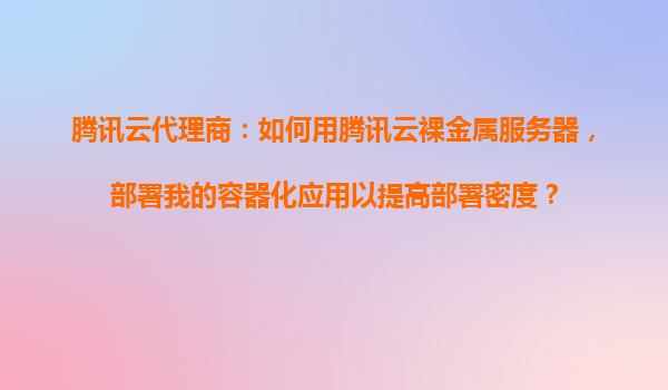 2025-10-23騰訊云代理商:如何用騰訊云裸金屬服務(wù)器,部署我的容器化應(yīng)用以提高部署密度? 1.騰訊云裸金屬服務(wù)器的優(yōu)勢解析 騰訊云裸金屬服務(wù)器(BareMetalServer)結(jié)合了傳統(tǒng)物理服務(wù)器的性能優(yōu)勢與...