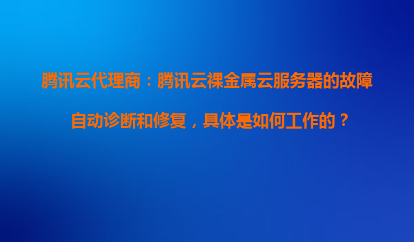 2025-10-23騰訊云代理商:騰訊云裸金屬云服務(wù)器的故障自動診斷和修復(fù)機(jī)制解析 一、裸金屬云服務(wù)器的技術(shù)背景與騰訊云優(yōu)勢 裸金屬云服務(wù)器(BareMetalServer)是一種兼具物理機(jī)性能與云服務(wù)彈性的計算資源,直接基于...