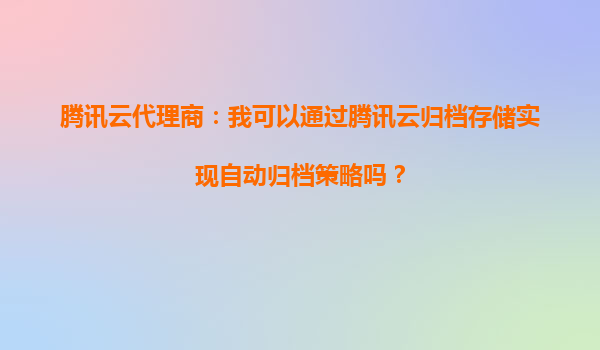 2025-10-05騰訊云代理商指南:如何通過騰訊云歸檔存儲(chǔ)實(shí)現(xiàn)自動(dòng)歸檔策略? 一、騰訊云歸檔存儲(chǔ)的核心價(jià)值 騰訊云歸檔存儲(chǔ)(CloudArchiveStorage,CAS)是專為海量冷數(shù)據(jù)...