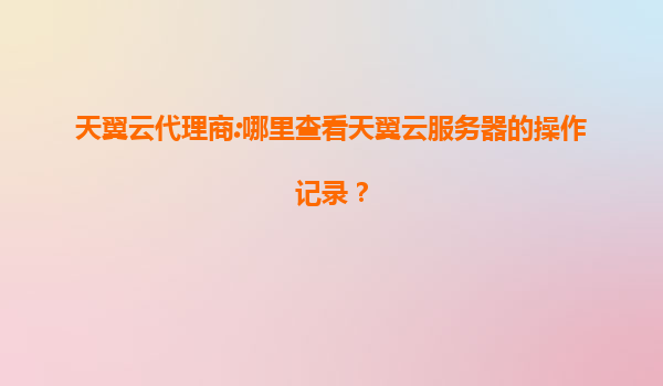 天翼云代理商:如何查看天翼云服務器操作記錄及平臺優(yōu)勢解析