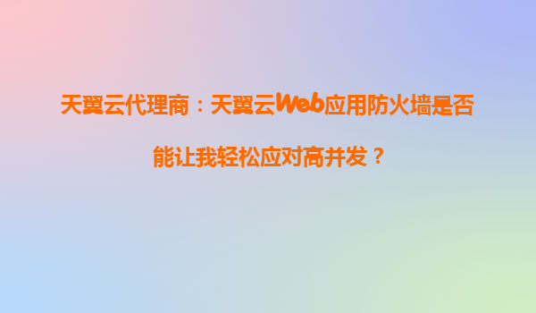 天翼云代理商:天翼云Web應(yīng)用防火墻能否輕松應(yīng)對(duì)高并發(fā)?