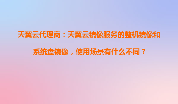 天翼云鏡像服務(wù):整機(jī)鏡像與系統(tǒng)盤鏡像的差異化應(yīng)用場景