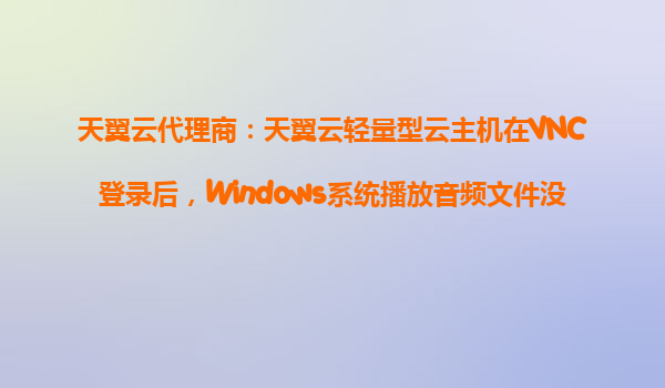 2025-11-01天翼云輕量型云主機Windows系統(tǒng)音頻問題解決方案 問題背景 作為天翼云代理商,我們時常收到用戶關(guān)于天翼云輕量型云主機的咨詢,其中Windows系統(tǒng)通過VNC登錄后播放音頻文件無聲音是較為常見的...
