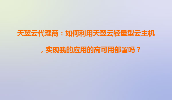2025-11-03天翼云代理商:如何利用天翼云輕量型云主機實現(xiàn)應(yīng)用的高可用部署 一、引言 在數(shù)字化轉(zhuǎn)型的浪潮中,企業(yè)應(yīng)用的高可用性(HighAvailability,HA)成為業(yè)務(wù)連續(xù)性...