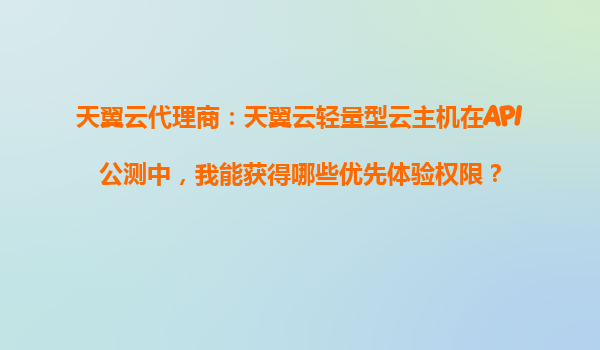 2025-10-31天翼云代理商:天翼云輕量型云主機(jī)在API公測中,我能獲得哪些優(yōu)先體驗權(quán)限? 一、天翼云輕量型云主機(jī)的核心優(yōu)勢 天翼云作為中國電信旗下的云服務(wù)品牌,始終以安全可靠、高效穩(wěn)定為核心優(yōu)勢,輕量型云主機(jī)更...