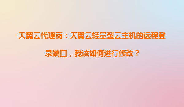 2025-10-31天翼云代理商:天翼云輕量型云主機(jī)的遠(yuǎn)程登錄端口修改指南 為何選擇天翼云輕量型云主機(jī)? 天翼云是中國電信旗下的云計算服務(wù)品牌,致力于為用戶提供安全、穩(wěn)定、高效的云服務(wù)。天翼云輕量型云主機(jī)以...