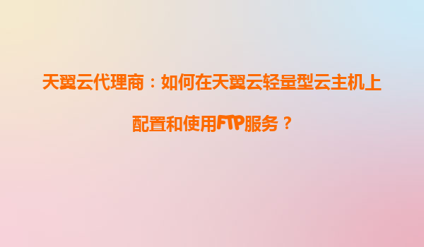 4008-020-360 天翼云輕量型云主機(jī)上配置FTP服務(wù)的完整指南 天翼云輕量型云主機(jī)的核心優(yōu)勢 作為國內(nèi)領(lǐng)先的云計算服務(wù)商,天翼云輕量型云主機(jī)憑借高性能SSD存儲、彈性帶寬配置和智能運維系統(tǒng),為用戶提供即開即用的計算資源。...