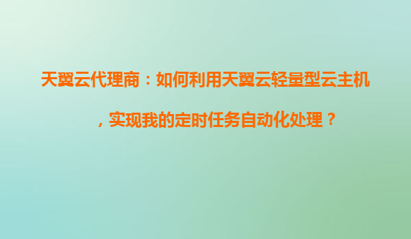 2025-10-31天翼云代理商:如何利用天翼云輕量型云主機(jī)實現(xiàn)定時任務(wù)自動化處理 一、引言 隨著企業(yè)數(shù)字化轉(zhuǎn)型加速,自動化運維需求日益增長。定時任務(wù)作為自動化運維的重要組成部分,可有效提升工作效率,減少人力成本。天...