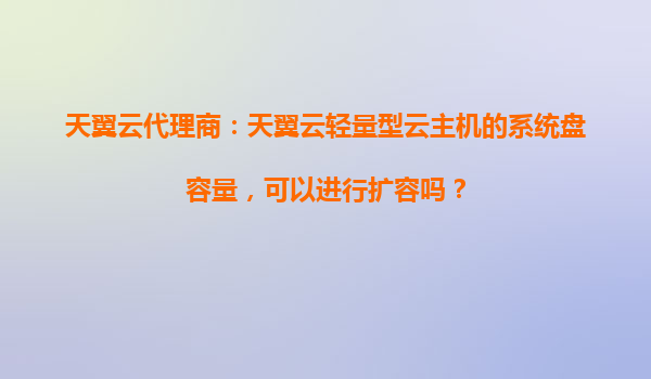 2025-10-31天翼云代理商解析:天翼云輕量型云主機(jī)的系統(tǒng)盤容量是否支持?jǐn)U容? 一、天翼云輕量型云主機(jī)簡介 天翼云輕量型云主機(jī)是中國電信天翼云推出的面向輕量級應(yīng)用場景的彈性計算服務(wù),具備高性價比、快速部署和靈活配...