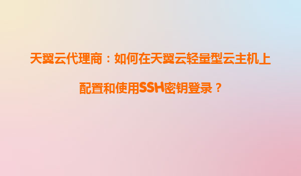 2025-10-31天翼云代理商:如何在天翼云輕量型云主機(jī)上配置和使用SSH密鑰登錄 引言 在云計算時代,安全性和效率是企業(yè)選擇云服務(wù)的重要考量。作為中國電信旗下的云服務(wù)品牌,天翼云憑借其高性能、高可靠性和本地化...