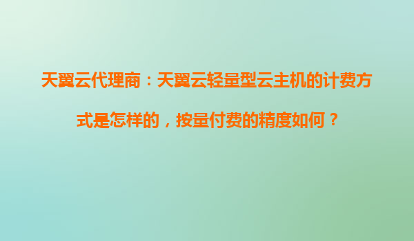 2025-10-31天翼云代理商解析:輕量型云主機(jī)計(jì)費(fèi)方式與按量付費(fèi)精度詳解 一、天翼云輕量型云主機(jī)計(jì)費(fèi)模式 天翼云輕量型云主機(jī)作為面向中小企業(yè)和開(kāi)發(fā)者的普惠型云計(jì)算服務(wù),提供靈活彈性的計(jì)費(fèi)方案...