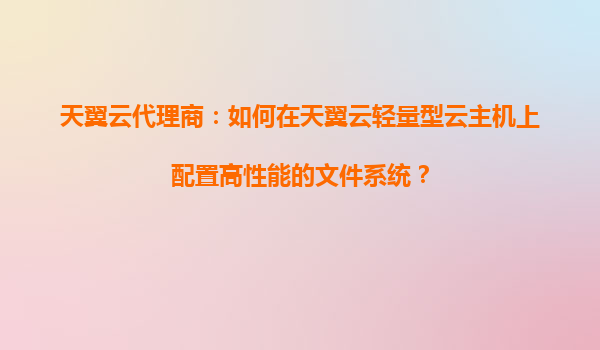 4008-020-360 天翼云代理商指南:如何在天翼云輕量型云主機(jī)上配置高性能文件系統(tǒng) 一、天翼云輕量型云主機(jī)的核心優(yōu)勢(shì) 天翼云輕量型云主機(jī)憑借其彈性擴(kuò)展、高性價(jià)比和深度安全防護(hù)能力,為中小企業(yè)及開發(fā)者提供了理想的云基礎(chǔ)...