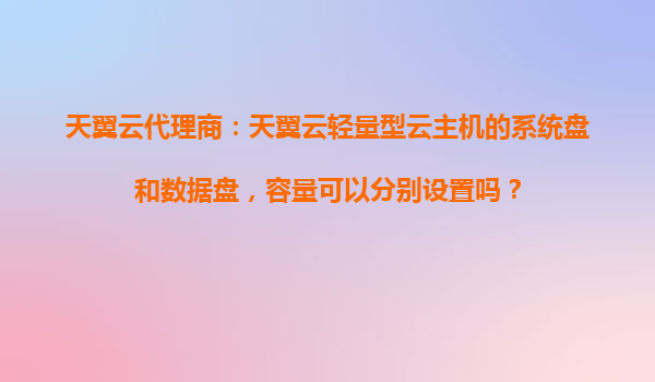 2025-10-30天翼云代理商解析:天翼云輕量型云主機(jī)的系統(tǒng)盤與數(shù)據(jù)盤容量設(shè)置獨(dú)立性的優(yōu)勢(shì) 一、輕量型云主機(jī)的核心需求與天翼云解決方案 隨著企業(yè)數(shù)字化轉(zhuǎn)型加速,輕量級(jí)業(yè)務(wù)場(chǎng)景對(duì)云主機(jī)的靈活性和成本效益要求日...