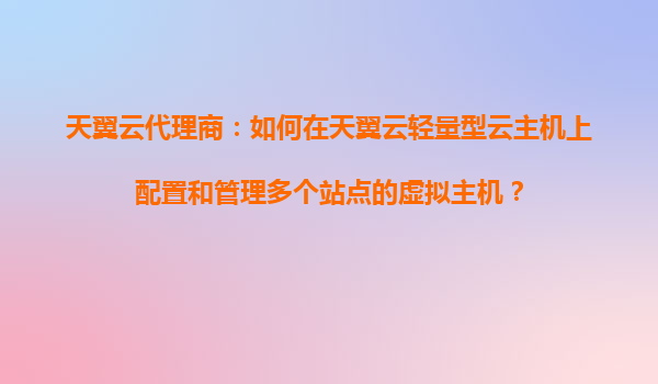 2025-10-29天翼云代理商指南:輕量型云主機多站點虛擬主機配置與管理 一、天翼云輕量型云主機的核心優(yōu)勢 作為中國電信旗下的云計算服務品牌,天翼云輕量型云主機以其高性價比、靈活擴展和安全可靠的特...