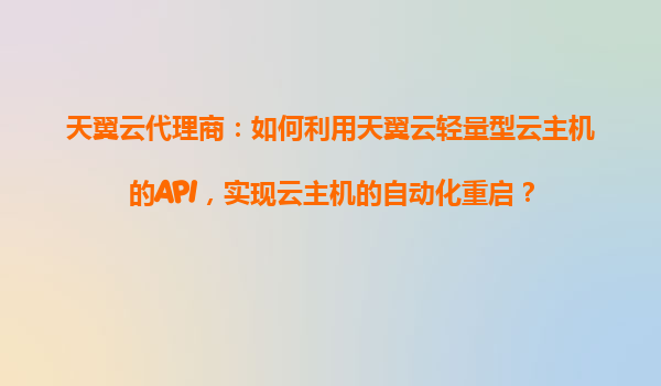 2025-10-29天翼云代理商:利用輕量型云主機API實現(xiàn)自動化重啟 在云計算時代,自動化運維已成為企業(yè)提升效率的關(guān)鍵手段。作為天翼云代理商,掌握輕量型云主機的API調(diào)用能力,能夠為客戶提供更高效的服務。本文將詳細介紹如何通...