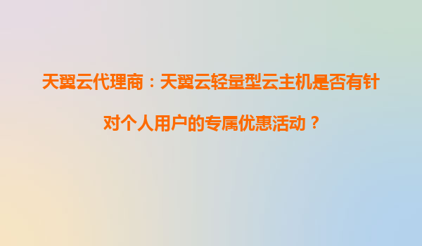 2025-10-29天翼云輕量型云主機:個人用戶專屬優(yōu)惠活動與代理服務優(yōu)勢解析 一、天翼云輕量型云主機簡介 天翼云輕量型云主機是中國電信旗下云計算品牌推出的高性價比產(chǎn)品,專為個人...