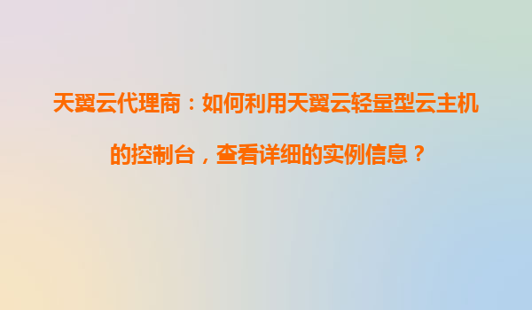 2025-10-29掌握天翼云輕量型云主機控制臺:高效查看實例信息的實用指南 天翼云輕量型云主機的核心優(yōu)勢 作為中國電信旗下的云計算服務品牌,天翼云輕量型云主機憑借其高性能、低成本、易管理等特性,成為中小企業(yè)及個人開...