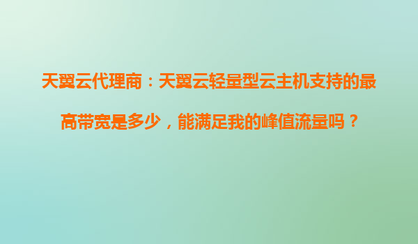 2025-10-29天翼云輕量型云主機帶寬解析:代理商優(yōu)勢助力業(yè)務峰值流量應對 一、天翼云輕量型云主機的帶寬能力 天翼云輕量型云主機作為面向中小企業(yè)和個人開發(fā)者的高性價比產(chǎn)品...