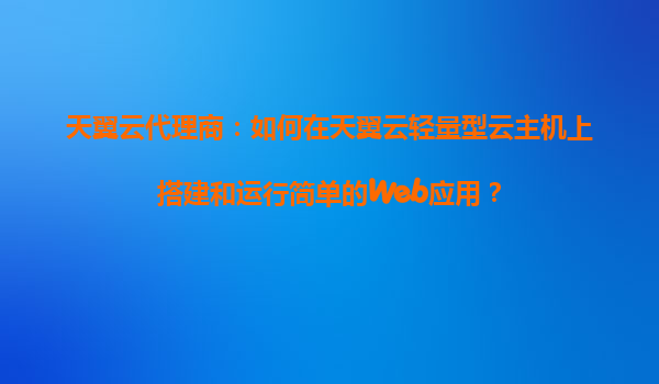 2025-10-29天翼云代理商:如何在天翼云輕量型云主機上搭建和運行簡單的Web應(yīng)用 天翼云輕量型云主機的優(yōu)勢 在云計算日益普及的今天,選擇合適的云服務(wù)商與云主機類型對于Web應(yīng)用的搭建至關(guān)...