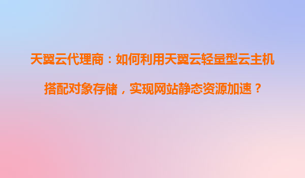 2025-10-29天翼云代理商:如何利用天翼云輕量型云主機搭配對象存儲,實現(xiàn)網(wǎng)站靜態(tài)資源加速? 一、天翼云的核心優(yōu)勢 作為中國電信旗下云計算服務(wù)品牌,天翼云憑借以下優(yōu)勢成為企業(yè)數(shù)字化轉(zhuǎn)型的優(yōu)選...