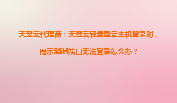 2025-10-29天翼云代理商:天翼云輕量型云主機SSH端口無法登錄問題解決方案 一、問題背景與天翼云輕量型云主機的優(yōu)勢 作為天翼云代理商,用戶在試用或管理天翼云輕量型云主機時,可能會遇到SSH端口無法登錄的情況...