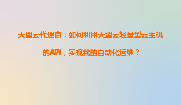 2025-10-28天翼云代理商:如何利用輕量型云主機API實現(xiàn)自動化運維 天翼云作為中國電信旗下的云計算服務(wù)品牌,憑借其穩(wěn)定的網(wǎng)絡(luò)基礎(chǔ)設(shè)施、合規(guī)的數(shù)據(jù)安全體系以及多樣化的產(chǎn)品矩陣,為企業(yè)和開發(fā)者提供了高效的云服務(wù)解決方案...