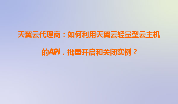 4008-020-360 天翼云代理商:如何利用天翼云輕量型云主機的API批量開啟和關(guān)閉實例 一、天翼云與代理商的優(yōu)勢概覽 天翼云作為中國電信旗下的云計算服務(wù)品牌,憑借其強大的基礎(chǔ)...