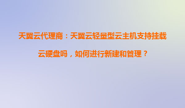 2025-10-28天翼云輕量型云主機支持掛載云硬盤嗎?如何進行新建和管理? 一、天翼云輕量型云主機與云硬盤的兼容性 天翼云輕量型云主機作為一種高性價比的云計算資源,不僅...