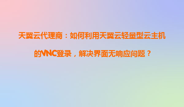 2025-10-28天翼云代理商:如何利用天翼云輕量型云主機(jī)的VNC登錄,解決界面無響應(yīng)問題? 一、天翼云輕量型云主機(jī)的核心優(yōu)勢(shì) 天翼云作為中國電信旗下的云計(jì)算品牌,其輕量型云主機(jī)憑借以下優(yōu)勢(shì)成為中小企業(yè)及開發(fā)者的首...