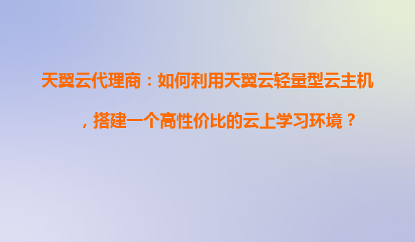 2025-10-28天翼云代理商指南:如何利用天翼云輕量型云主機(jī)搭建高性價(jià)比云上學(xué)習(xí)環(huán)境 一、天翼云輕量型云主機(jī)的核心優(yōu)勢(shì) 作為中國電信旗下的云計(jì)算服務(wù)品牌,天翼云輕量型云主機(jī)憑借以下優(yōu)勢(shì)成為搭...
