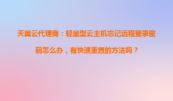 2025-10-28天翼云代理商指南:輕量型云主機(jī)忘記遠(yuǎn)程登錄密碼的快速重置方法 在數(shù)字化時(shí)代,云計(jì)算已成為企業(yè)及個(gè)人用戶的重要基礎(chǔ)設(shè)施。天翼云作為中國電信旗下的云計(jì)算服務(wù)品牌,憑借其穩(wěn)定的性能、安全的保障和優(yōu)質(zhì)的服...