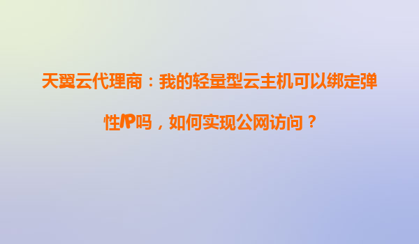 2025-10-27天翼云代理商指南:輕量型云主機(jī)如何綁定彈性IP并實(shí)現(xiàn)公網(wǎng)訪問 一、輕量型云主機(jī)與彈性IP的關(guān)系 天翼云的輕量型云主機(jī)(Lighthouse)是為中小企業(yè)及開發(fā)者提供...