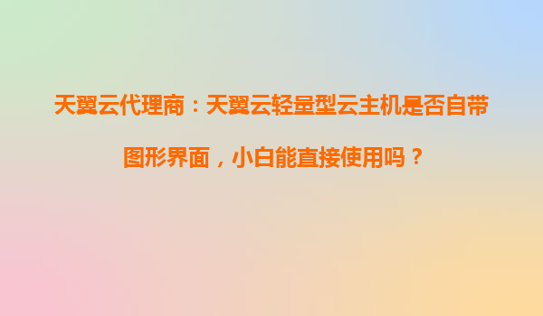 2025-10-27天翼云輕量型云主機(jī)是否自帶圖形界面?小白用戶能否直接上手? 一、天翼云輕量型云主機(jī)的核心特性 天翼云輕量型云主機(jī)是中國(guó)電信旗下天翼云推出的面向中小企業(yè)和個(gè)人開發(fā)者的基礎(chǔ)云計(jì)算服務(wù),主打...