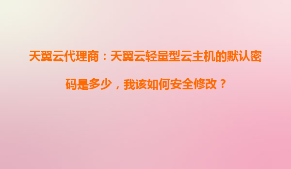 2025-10-27天翼云輕量型云主機(jī)默認(rèn)密碼及安全修改指南 一、天翼云輕量型云主機(jī)的默認(rèn)密碼 天翼云輕量型云主機(jī)在創(chuàng)建時(shí),系統(tǒng)會(huì)為每個(gè)實(shí)例生成一個(gè)隨機(jī)初始密碼,并通過控制臺(tái)或短信方式發(fā)送給...