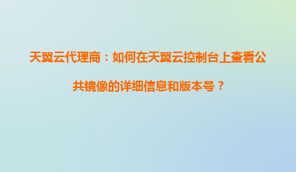 2025-10-25天翼云代理商指南:如何查看公共鏡像的詳細(xì)信息和版本號(hào) 作為中國電信旗下的云計(jì)算服務(wù)品牌,天翼云憑借其強(qiáng)大的基礎(chǔ)設(shè)施、安全可靠的服務(wù)以及豐富的云產(chǎn)品矩陣,已成為眾多企業(yè)和個(gè)人用戶的首選云平臺(tái)。對(duì)于代...
