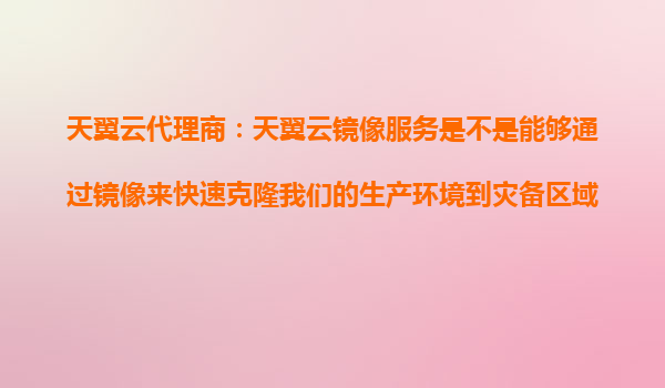 2025-10-25天翼云鏡像服務(wù):快速克隆生產(chǎn)環(huán)境到災(zāi)備區(qū)域的智能解決方案 一、鏡像服務(wù)的核心價(jià)值 在數(shù)字化轉(zhuǎn)型浪潮中,企業(yè)生產(chǎn)環(huán)境的連續(xù)性與數(shù)據(jù)安全性成為核心訴求。天...