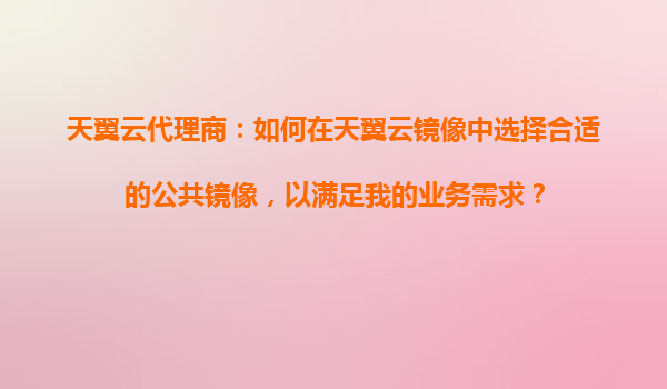 4008-020-360 天翼云代理商指南:如何在天翼云鏡像中選擇合適的公共鏡像,以滿足業(yè)務(wù)需求? 一、天翼云公共鏡像的核心優(yōu)勢 天翼云作為中國電信旗下的云計(jì)算服務(wù)品牌,其公共鏡像庫具備以下差異化優(yōu)勢: 國...
