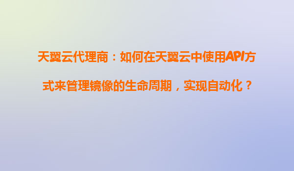 2025-10-24天翼云代理商:如何在天翼云中使用API方式管理鏡像生命周期,實(shí)現(xiàn)自動(dòng)化? 一、天翼云API管理的核心優(yōu)勢 天翼云作為中國電信旗下的云計(jì)算服務(wù)品牌,其API體系在安全性、穩(wěn)定性和國產(chǎn)化適...
