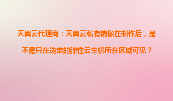 2025-10-23天翼云代理商視角:天翼云私有鏡像的可見性與區(qū)域選擇策略 一、天翼云私有鏡像的核心特性 在天翼云的架構(gòu)設(shè)計(jì)中,私有鏡像是用戶自定義的系統(tǒng)模板,允許用戶基于現(xiàn)有云主機(jī)創(chuàng)建包含個(gè)性化配置的鏡像。關(guān)于...