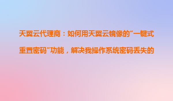 4008-020-360 天翼云代理商指南:如何用天翼云鏡像“一鍵式重置密碼”功能解決操作系統(tǒng)密碼丟失問題 一、問題背景 在日常運(yùn)維中,操作系統(tǒng)密碼丟失是常見問題。傳統(tǒng)處理方式需通過控...