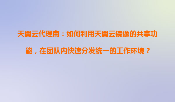 2025-10-23天翼云代理商:如何利用天翼云鏡像的共享功能,在團(tuán)隊(duì)內(nèi)快速分發(fā)統(tǒng)一的工作環(huán)境? 一、天翼云鏡像共享功能的核心價(jià)值 天翼云的鏡像共享功能允許用戶將自定義的系統(tǒng)鏡像(如預(yù)裝軟件、...