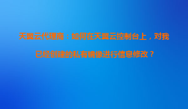 2025-10-23如何在控制臺(tái)上修改私有鏡像信息 作為天翼云代理商,私有鏡像的靈活管理是業(yè)務(wù)高效運(yùn)行的關(guān)鍵。天翼云控制臺(tái)提供了直觀便捷的私有鏡像修改功能,幫助您快速完成信息更新。以下為詳細(xì)操作步驟: 登錄天翼云控制臺(tái) ...