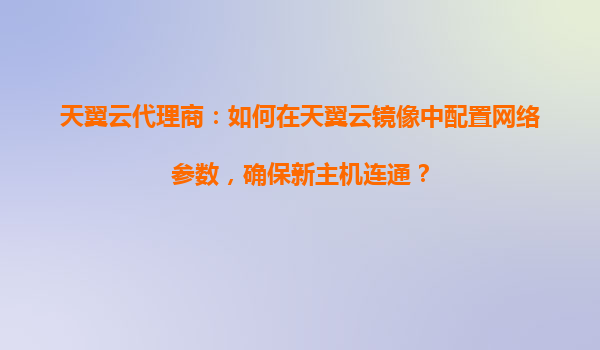 4008-020-360 天翼云代理商指南:如何在天翼云鏡像中配置網(wǎng)絡(luò)參數(shù),確保新主機(jī)連通? 一、天翼云及代理商的優(yōu)勢 天翼云作為中國電信旗下云計(jì)算品牌,憑借央企背景和強(qiáng)大的基礎(chǔ)設(shè)施能...