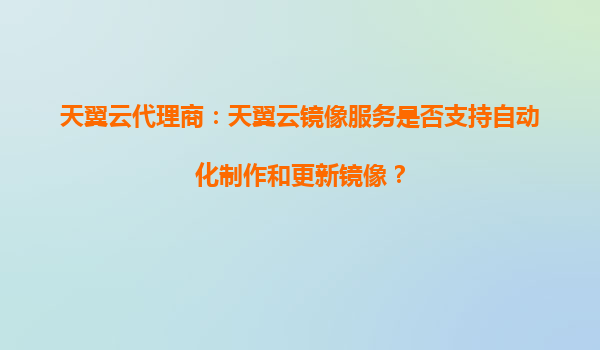2025-10-18天翼云代理商:天翼云鏡像服務如何支持自動化制作與更新鏡像? 一、天翼云鏡像服務的核心功能 天翼云作為中國電信旗下云計算服務品牌,其鏡像服務(ImageServi...