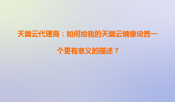 4008-020-360 天翼云代理商指南:如何設置更有意義的鏡像描述 引言 在云計算時代,鏡像作為預配置的模板,是快速部署云服務器的重要資源。一個清晰、有意義的鏡像描述能幫助用戶快速理解鏡像用途,提高運維效率。作為天...