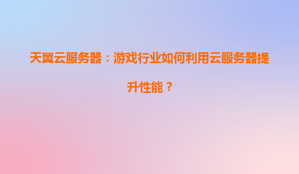 2025-04-05天翼云服務(wù)器:游戲行業(yè)如何利用云服務(wù)器提升性能? 一、游戲行業(yè)面臨的性能挑戰(zhàn) 隨著游戲行業(yè)的快速發(fā)展,玩家對畫面品質(zhì)、實時交互和全球同服的需求日益增長...