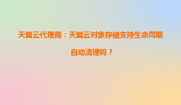 2025-10-15天翼云代理商解析:天翼云對象存儲(OOS)的生命周期自動(dòng)清理功能與核心優(yōu)勢 一、天翼云對象存儲是否支持生命周期自動(dòng)清理? 答案是肯定的。天翼云對象存儲(OOS)提供了完善的生命周期管理功...