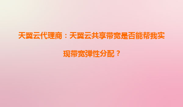 2025-10-05天翼云代理商:天翼云共享帶寬是否能幫我實(shí)現(xiàn)帶寬彈性分配? 一、天翼云共享帶寬的核心優(yōu)勢 天翼云作為中國電信旗下的云計(jì)算服務(wù)品牌,其共享帶寬服務(wù)依托電信級網(wǎng)絡(luò)基礎(chǔ)設(shè)施,具備以下核心優(yōu)勢: ...